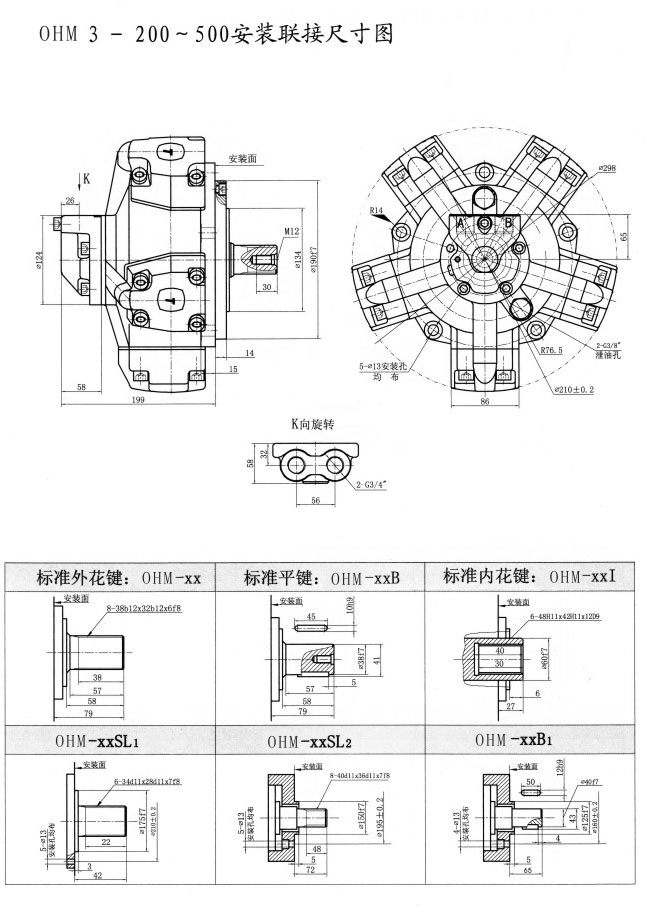 Type OHM | Displacent(ml/r) | 額定壓力 | 最高壓力 | 額定扭矩 | 單位理論扭矩 | Sped ange(r/min) | Weight(kg) |
