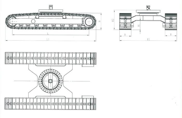 中心距L | 底盤總長L1 | 履帶板寬B | 底盤外寬B1 | 底盤高度H | 離地高度H1 | 單速 | 雙速 | ||