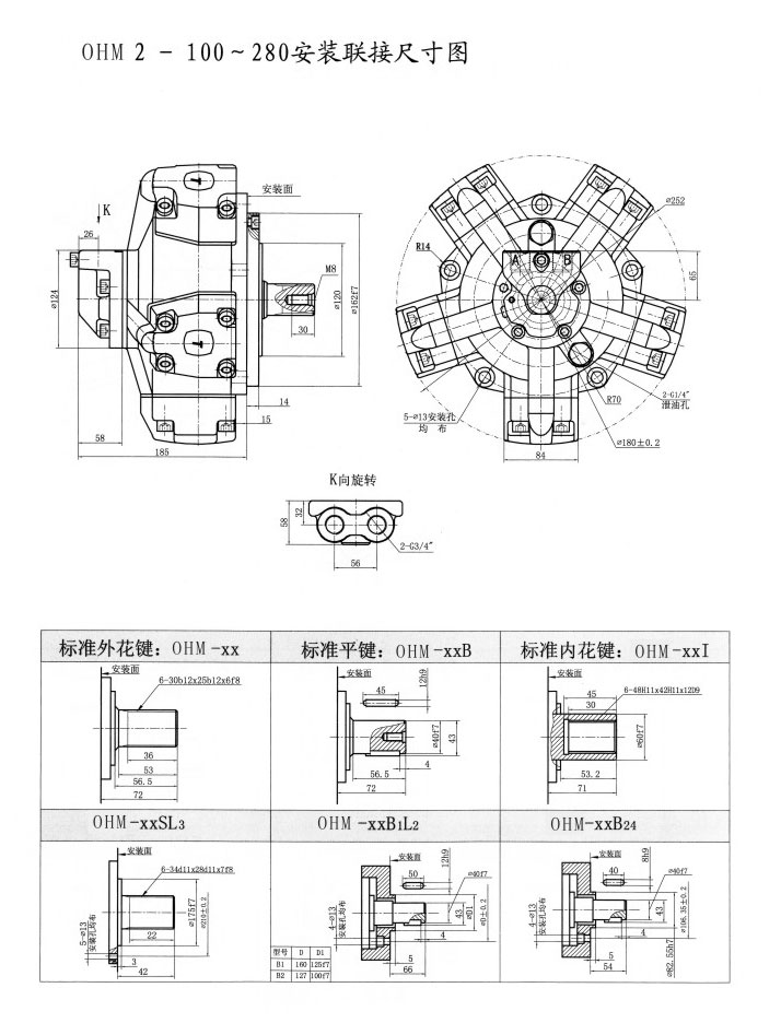 Type OHM | Displacent(ml/r) | 額定壓力 | 最高壓力 | 額定扭矩 | 單位理論扭矩 | Sped ange(r/min) | Weight(kg) |