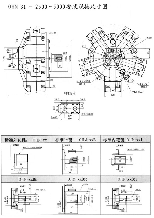 Type OHM | Displacent(ml/r) | 額定壓力 | 最高壓力 | 額定扭矩 | 單位理論扭矩 | Sped ange(r/min) | Weight(kg) |